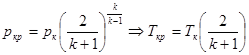 Связь параметров рабочего тела в критическом сечении сопла с параметрами в камере: