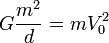где V — текущая скорость звёзд (скорости должны быть одинаковы из-за соображений симметрии), r — расстояние между звёздами, V0 — скорость на бесконечности до взаимодействия, а G — гравитационная постоянная. Будем считать, что звёзды испытали столкновение, если в момент их сближения кинетическая энергия удвоилась.