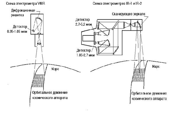 картирование состава поверхности Марса - вулканических и осадочных пород, измороси и льдов;