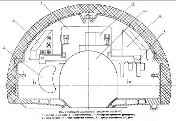Приборы 3, 4, 5 и 6 установлены на раме 7, которая крепится к шпангоуту корпуса центральной части в двух точках шарнирно и в шести - жестко. Шарнирное соединение дает возможность откидывать раму 7 с установленными на ней приборами и подключенной кабельной сетью на угол, обеспечивающий доступ к приборам, расположенным под рамой на корпусе ОК. Для амортизации рамы в местах жесткого крепления установлены прокладки из паронита. Приборы закреплены на раме с помощью ленты и скоб. Остальная аппаратура герметичного отсека крепится к корпусу СК. КВ передатчики 13, 16 и блок барореле 15 установлены на резиновых амортизаторах.