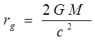 где G - постоянная тяготения, c - скорость света, М - масса тела. Гравитационный радиус Солнца 3 км, Земли - около 9 мм.