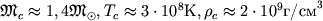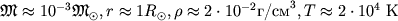 оно становится непрозрачным для ИК-излучения пылинок. Выделяющаяся в ядре энергия медленно просачивается к поверхности благодаря лучистой теплопроводности. Температура начинает повышаться почти адиабатически, это приводит к росту давления, и ядро приходит в состояние гидростатического равновесия. Оболочка продолжает падать на ядро, и на его периферии возникает ударная волна. Параметры ядра в это время слабо зависят от общей массы протозвезды: ![]()