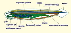 4. Кровеносная система замкнутая, сердце расположено на брюшной стороне, под хордой и пищеварительной трубкой.