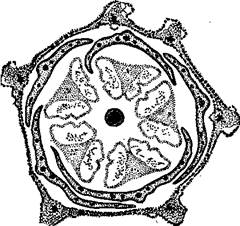 1 Зародыш занимает всю полость зародышевого мешка и даже весь объем семяпочки, вытесняя почти весь эндосперм и перисперм. Разросшийся зародышевый мешок в этом случае почти соприкасается с интегументом семяпочки, если не считать 1-2 слоев клеток, оставшихся от нуцеллуса. Питательные вещества накапливаются в семядолях зародыша. Следовательно, при таком типе эмбриогенеза непосредственно под кожурой семени будет находиться один только зародыш, без эндосперма и перисперма, если не считать одно - двухслойные остатки от них. Такие семена свойственны бобовым растениям, тыквенным, хлопчатнику, розоцветным, сложноцветным. У рдеста совершенно не остается ткани эндосперма и перисперма.