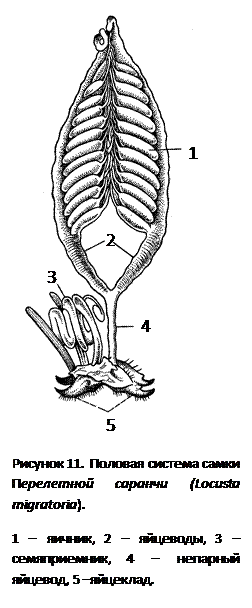 4. Для саранчовых характерно сперматофорное оплодотворение. сперматофора представляет собой прозрачное образование и чаще имеет форму цилиндра, в котором находятся спермии, здесь же расположены добавочные тела в виде скоплений шариков и прозрачных глыбок.
