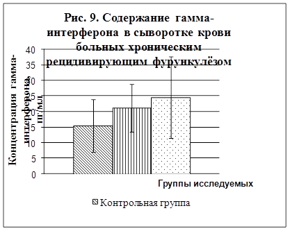 3.1.2. Результаты исследования уровня гамма-интерферона в сыворотке крови у больных с хроническим рецидивирующим фурункулезом