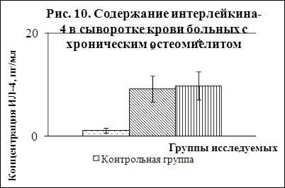 3.2.1. Результаты исследования уровня интерлейкина-4 в сыворотке крови у больных с хроническим остеомиелитом
