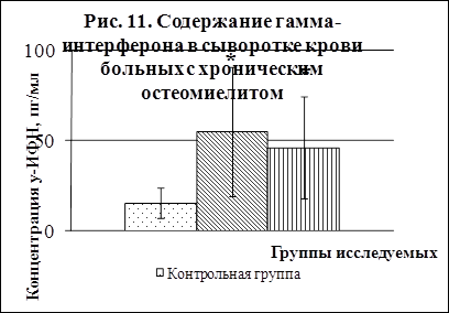 3.2.2. Результаты исследования уровня гамма-интерферона в сыворотке крови у больных с хроническим остеомиелитом