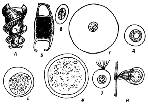 донные: Е – белорыбицы, Ж – форели; прикрепленные: З – сайры, И – атерины