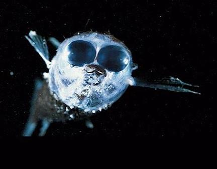 Обитатели подводных глубин находятся в постоянном мраке. Чем глубже проникает в море дневной свет, тем быстрее он слабеет. Различными приборами с фотографическими пластинками, которые намного чувствительней к свету, обнаружено, что свет проникает в толщу океана до глубины 1000 м. Глубже уже никакие приборы его не улавливают. Поэтому одни обитатели подводных глубин слепые, а у других глаза имеют особое строение, позволяющее улавливать даже малейшие проблески света. Их глаза достигают высокой степени развития. Иногда они бывают огромных размеров, снабженные системой линз (см. приложение 2.). Другие животные имеют специальные приспособления светящиеся различными цветами. Они не только освещают дорогу владельцу, но и приманивают добычу. А некоторые обитатели могут по своему желанию « тушить» и «зажигать» свет в этих органах. Также есть животные, например один из видов кальмара, у которых в организме накапливается особая слизистая жидкость. Животное в момент опасности выпускает ее и скрывается от врага за светящимся голубым облаком.