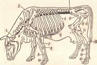Скелет убойного животного состоит из костей головы, костей туловища и костей конечностей (рис. 1).