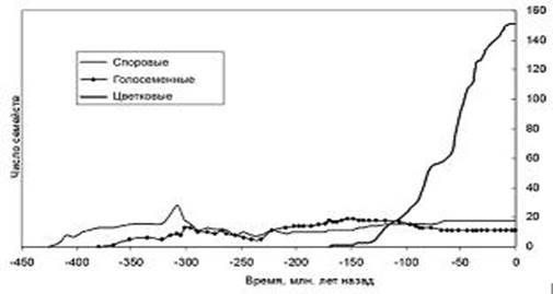 Рисунок 2. Динамика разнообразия основных групп наземных растений во времени