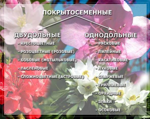 - рассмотреть краткую характеристику классов покрытосеменных;