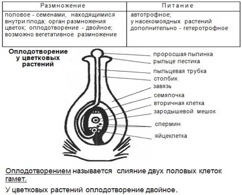 Наиболее характерно для них наличие пестика, образованного одним или несколькими плодолистиками (макро- и мегаспорофиллами), сросшимися своими краями, так что в нижней части пестика образуется замкнутое полое вместилище – завязь, в которой развиваются семяпочки (макро- и мегаспорангии).