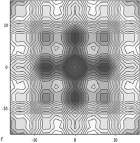 Описание: функция отличается тем ,что на заданной области в большой ее части функция принимает одно и тоже значение и есть небольшая область, на которой сосредоточено несколько локальных минимумов, среди которых находится и глобальны минимум. Из результатов видно, что при небольшом увеличении ресурсов, алгоритм хорошо работает и с этой функцией, а, например, поиск локального спуска не смог найти бы решение.