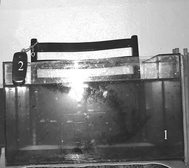 Данная работа проводилась автором работы в сентябре – ноябре 2010г. Для эксперимента были взяты 2 одинаковых аквариума объемом в 40 л. в которые были посажены мальки гуппи в количестве 20 штук в каждом аквариуме. Рядом с одним аквариумом положили сотовый телефон NOKIA 7210 (опытный аквариум)
