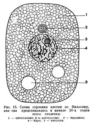 На рис. 15 и рис. 16 сопоставлена схема строения клетки, как она представлялась в двадцатых годах этого столетия и как она представляется в настоящее время.