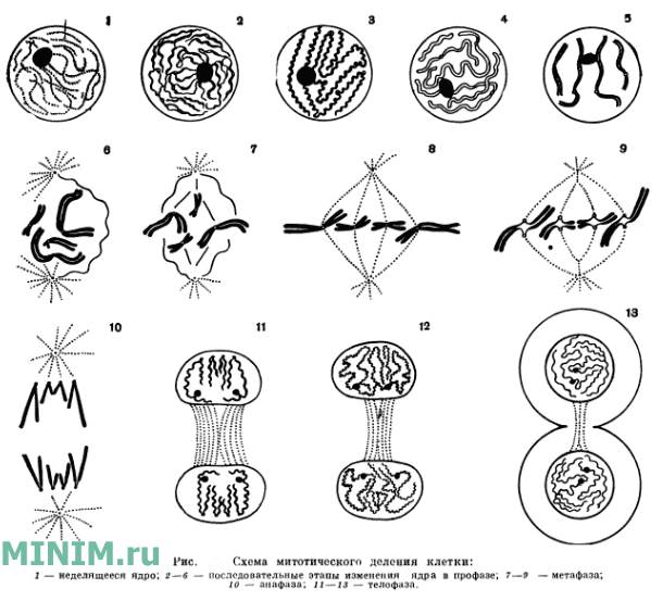 Рис. Схема митотического деления клетки: