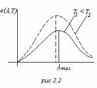 где h — Планка постоянная , k — Больцмана постоянная . Вид функции (2) для разных температур показан на рис. С ростом Т максимум функции смещается в сторону малых длин волн.