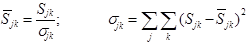 - среднее значение яркости исходного изображения в точке с координатами ( j, k ).