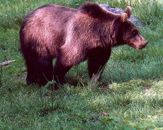 Бурый медведь (Ursus arctos) – распространен по всему Ишимбайскому району, кроме Шиханского и Ишимбайского лесничеств, но плотность его не велика. Типичные стации обитания медведя – спелые захламленные смешанные леса, а также спелые и перестойные лиственные леса, удаленные от крупных населенных пунктов. Питается разнообразной пищей растительного и животного происхождения. Весной по выходе из берлоги питается преимущественно животной пищей, с появлением проталин поедает зелень, выкашивает корневища, летом переходит на питание ягодами, овсом, пшеницей. Осенью набирает запас жира, поедая орехи, желуди, а при недостатке растительных кормов нападает на домашний скот и крупных диких животных. Зимой залезает в берлогу, спячка продолжается до апреля. Течка проходит в июне, беременность около 7 месяцев, медвежата обычно 2, реже 1 или 3 – 4. Медвежата держатся с матерью 2 – 3 года. Половая зрелость наступает на 3 году жизни. В Ишимбайском районе насчитывается около 70 медведей.