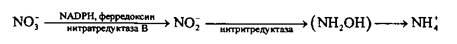 Нитратное дыхание. От нитратного дыхания следует отличать ассимиляционную нитратредукцию, которая может происходить как в аэробных, так и в анаэробных условиях и служит для получения аммонийной формы азота, используемой в конструктивных процессах. Этот процесс осуществляется «растворимыми» ферментами: нитратредуктазой и нитритредуктазой и не связан с запасанием энергии. В процессе ассимиляционной нитратредук-ции не образуется летучих продуктов: