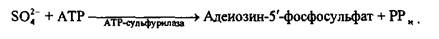 Сульфатное дыхание. Как и в случае нитратредукции существует ассимиляционная сульфатредукция, при которой сульфат восстанавливается до сульфида с последующим использованием в конструктивных процессах. Первой стадией является активация сульфата: