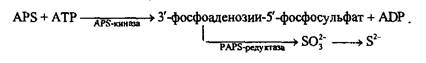 Дважды «активированный 3‑фосфоаденозин‑5‑фосфосульфат подвергается восстановлению сначала до сульфита, а затем до сульфида. Такой путь восстановления сульфата присущ широкому кругу организмов.
