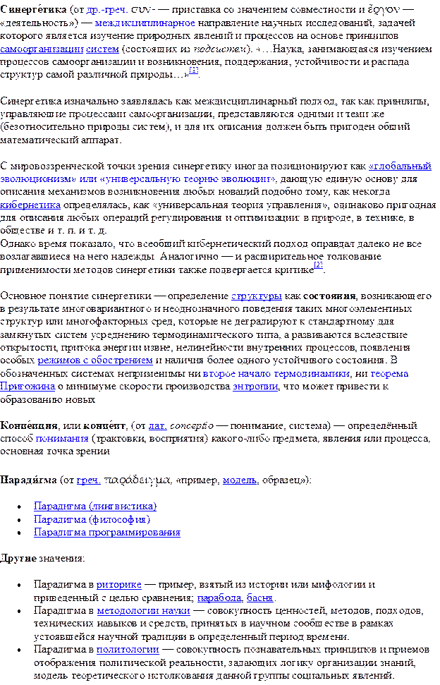- Парадигма в методологии науки — совокупность ценностей, методов, подходов, технических навыков и средств, принятых в научном сообществе в рамках устоявшейся научной традиции в определенный период времени.