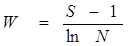 где W - коэффициент Маргалефа, S - число видов в биотопе, N – число всех особей, встреченных в биотопе.