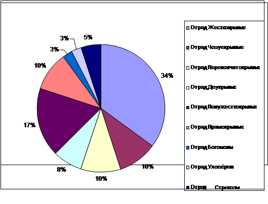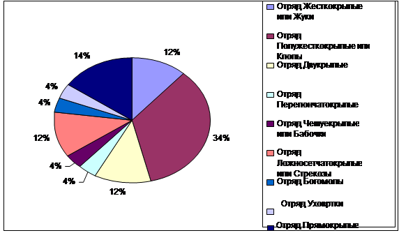 Рисунок 2. Видовая представленность отрядов насекомых района исследования
