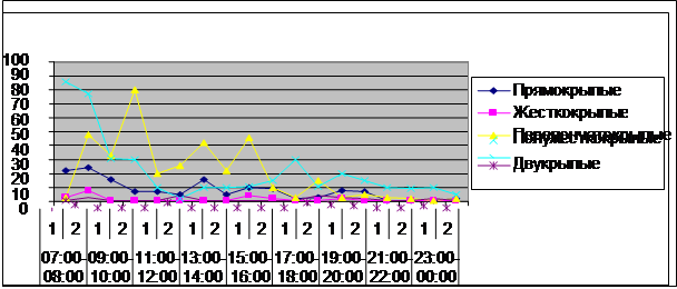 Для получения сравнимых результатов по количественному и видовому составу животных время отлова рассчитывает количестве ловушко – суток для каждой учетной площадки. Например, на контрольной площадке 3-й ловушки простояли двое суток и поймано 16 жужелиц, а в исследуемой 3-й ловушки простояли двое суток и в них поймано 22жужелицы. Получается на контрольной площадке 3x2 = 6 ловушко – суток (л/с), на исследуемой – 3x3 = 9 л/с. Чтобы сравнить эти данные, количество животных делим на количество ловушко – суток и получаем на контрольной площадке 16:6 = 2,7 жужелицы на 1 л/с, и 22 : 9 = 2,4 – на исследуемой.