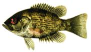 Глаза расположены по обе стороны головы, что обеспечивает большое поле зрения, хотя и имеет недостатки монокулярного зрения - отсутствия чувства перспективы и плохую оценку расстояния. Но, впереди имеется участок, который доступен обоим глазам рыбы и она при необходимости лучше оценить расстояние поворачивается по направлению к интересующему ее предмету. У большинства рыб глаза расположены с боков головы, ближе к концу рыла чем к жабрам. У рыб, ведущих придонный образ жизни, они расположены в верхней части головы. Расстояние между глазами, измеренное по верху головы, называется шириной лба.