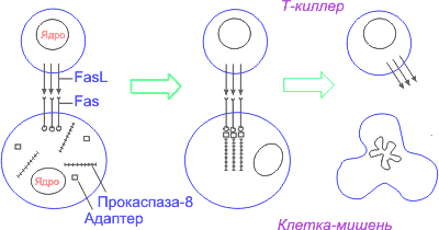 Рис. 2. Зависимый от Fas-рецептора апоптоз клетки-мишени при действии цитотоксического Т-лимфоцита (Т-киллера)