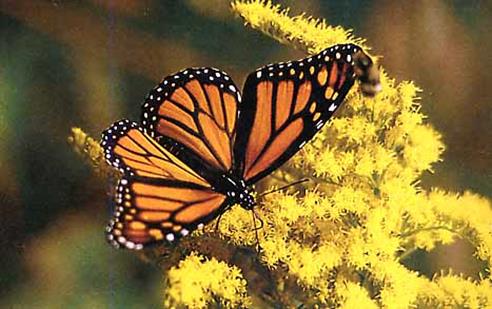 Путешественники неизменно, из года в год следу ют одними и теми же маршрутами, останавливаясь чтобы подкрепиться нектаром диких цветов. Особенной популярностью у них пользуется золотарник (внизу). Оказавшись на зимних квартирах, бабочки собираются плотными массами на деревьях (на следующей странице), хотя прилетают они обычно группами не более десяти штук. Весной данаиды вновь улетают на север. По пути самки откладывают оплодотворенные яйца на молочай. Ко времени окончания путешествия туда и обратно практически все из первоначальных мигрантов умирают.