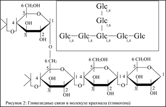 Углеводы пищи в пищеварительном тракте распадаются на мономеры при действии гликозидаз – ферментов, катализирующих гидролиз гликозидных связей (рис.2) в полисахаридах.