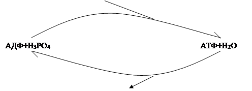 Энергия гидролиза АТФ в свою очередь используется для обеспечения разнообразных эндергонических процессов. Реакция фосфорилирования АДФ и последующего использования АТФ в качестве источника энергии образует циклический процесс: