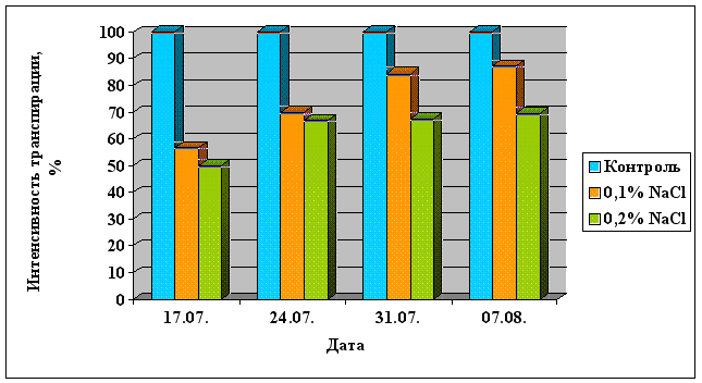 в) Влияние засоления на интенсивность транспирации; ………. 45