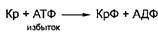 Синтез креатинфосфата в мышечных клетках происходит во время отдыха путем взаимодействия креатина с избытком АТФ: