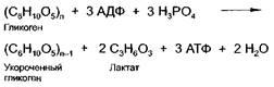Итоговое уравнение анаэробного расщепления гликогена имеет следующий вид: