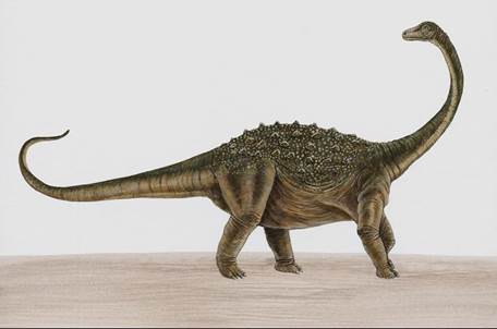 Амаргазавр – Почти полный скелет амаргазавра был открыт в Аргентинской Патагонии в 1984г. Он показал, что этот диплодоцид имел очень интересную особенность: ряд шипов до 65см. в длину каждый, располагавшихся на спине и шеи. Они могли образовывать шипастую гриву или быть покрытыми кожей, создавая структуру