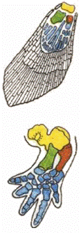 Рис.2. Скелет передней конечности кистепёрой рыбы и древнего земноводного