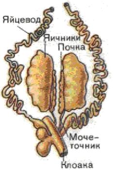 Рис. 10. Органы размножения и выделения самки лягушки