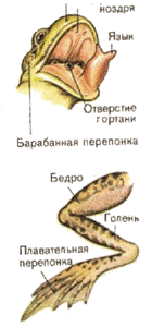 Рис. 12. Строение головы и ноги лягушки