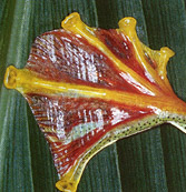 Летом 2001 года я самостоятельно анатомировала лягушку. Моей целью, было, поближе ознакомится с устройством различных систем органов. Лучше всего удалось рассмотреть пищеварительную, дыхательную и кровеносную системы. Желудок по своей форме напоминал гусеницу длинной около 3см. Он был заполнен жуками, по всей видимости, переварить хитин для лягушки не проблема. Сердце трёхкамерное: двух относительно крупных предсердий и одного желудочка. К коже подходит множество мелких кровеносных сосудов. Хорошо были видны лёгкие. Когда я дотрагивалась до некоторых точек, тело отвечало импульсивными реакциями, мне кажется этими, точками являлись нервные узлы. До мозга добраться не удалось, потому что он слишком мал, и череп очень прочный.