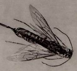 (сем. Siricidae), в отличие от пилильщиков, развиваются в древесине, в том числе и мертвой. Для откладки яиц самки используют мощный и толстый яйцеклад, из-за которого эти насекомые и излучили снос название. Створки яйцеклада снабжены насечками, как рашпиль. Поочередно двигая створками, самка как бы выпиливает в древесине глубокий ход, на дно которого и откладывается яйцо. Личинки рогохвостов белого пли желтоватого цвета. им«м»т рудиментарные грудные ноги. Па заднем конце тела у них имеется острый шип, который служит для того, чтобы опираться в стенку хода при движении вперед. Вылупившиеся из яиц личинки начинают прокладывать в древесине ход, ведущий к центру ствола. В отличие от ходов живущих в древесине личинок жуков-усачей и златок ход рогохвостов имеет цилиндрическое, а не овальное сечение и забит мелкой буровой мукой, а не грубыми огрызками. Развитие личинки длится минимум 2 года, а в сухой мертвой древесине может затягиваться на несколько лот.