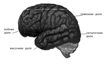 . Больше 2/3 площади поверхности коры скрыто в бороздах. В коре больших полушарий насчитывается около 14 млрд. нейронов. Каждое полушарие разделено бороздами на лобную, теменную, височную и затылочную доли. Самые глубокие борозды – это центральная, отделяющая лобную долю от теменной, и боковая, отграничивающая височную долю.