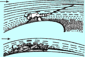 Личинка поденки сопротивляется потоку, прижимаясь ко дну