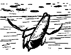 Но вернемся к обитателям наших рек и прудов. В стоячих и медленно текущих водоемах можно встретить гребляка зубчатоногого ( Corixa dentipes ) из семейства гребляков ( Corixidae ). Его задние плавательные ноги - это весла, длинные и плоские, усаженные упругими волосками; отсюда и название - “гребляк“. Плавают гребляки, как и гладыши, на спине. Питаются не только растительной, но и животной пищей.