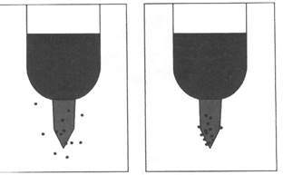 В поисках ответов на эти и многие другие вопросы группа Хейлмена занималась экспериментальным изучением поведения птенцов чайки с момента их вылупления и до достижения недельного возраста. К седьмому дню жизни формирование пищевых реакций у птенцов практически завершается. Кроме того, ограничивая исследование таким коротким периодом, можно более четко контролировать отдельные элементы онтогенеза и оценивать их вклад в поведение. Как это часто бывает, исследование породило больше вопросов, чем разрешило, однако было получено много новых сведений. Рассмотрим сначала развитие точности клевков. Для изучения этой проблемы была схематически изображена голова взрослой птицы на маленьких карточках.